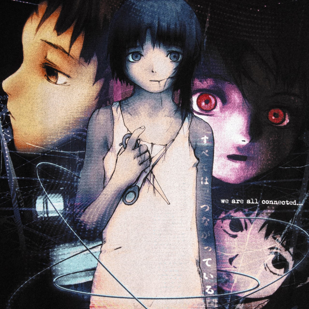 今作は、安倍吉俊氏のイラストを中心に『serial experiments lain』の世界観をオリジナルコラージュで表現。
